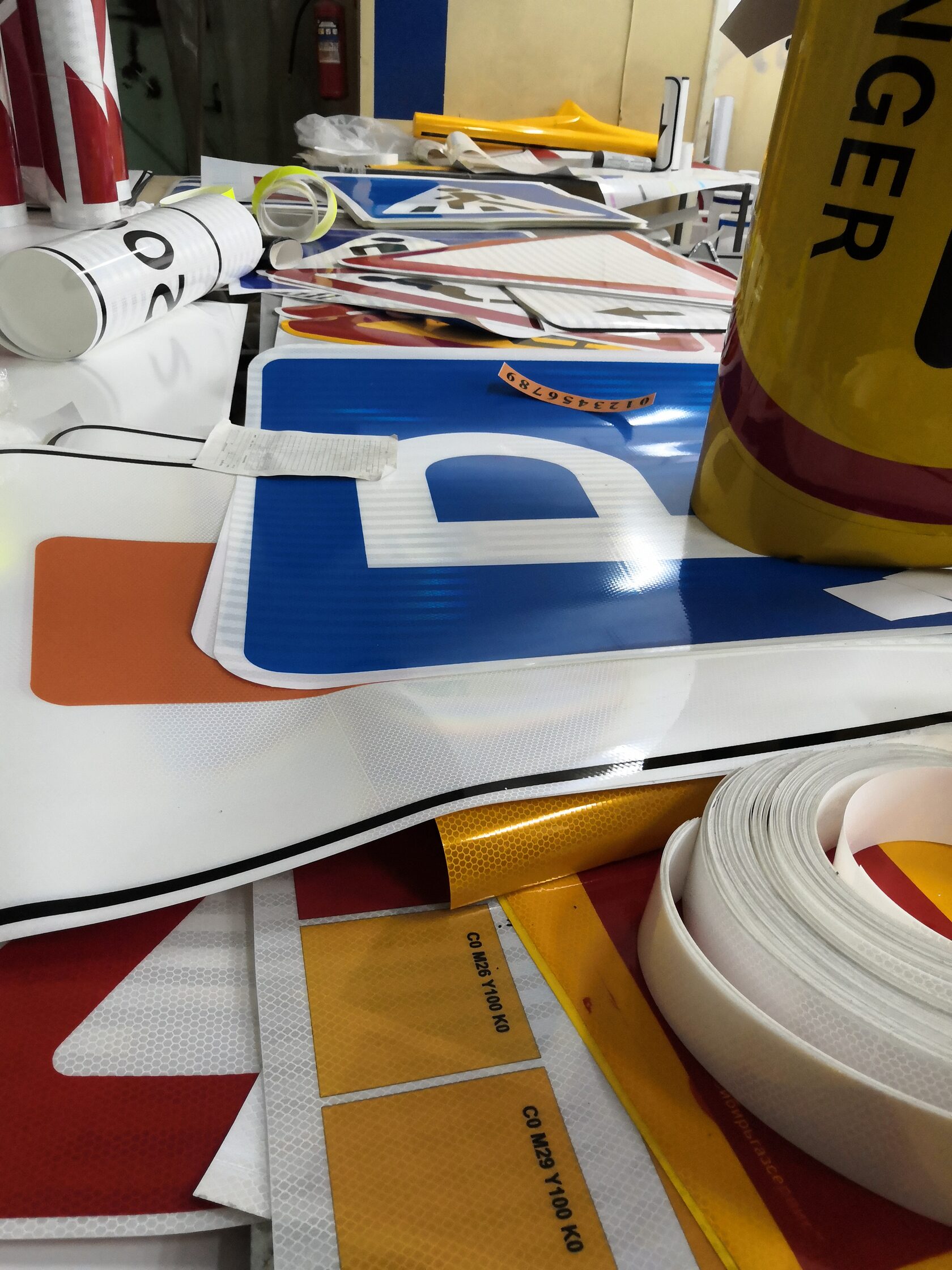 Основа знаков изготавливается из оцинкованного металла толщиной 0,8-1 мм (с I классом толщины покрытия по ГОСТ 14918-80) с применением световозвращающих пленок различных типов: