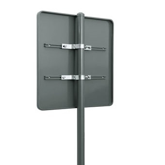 Знак крепится к стойке через стальной хомут и пластины на болтах.